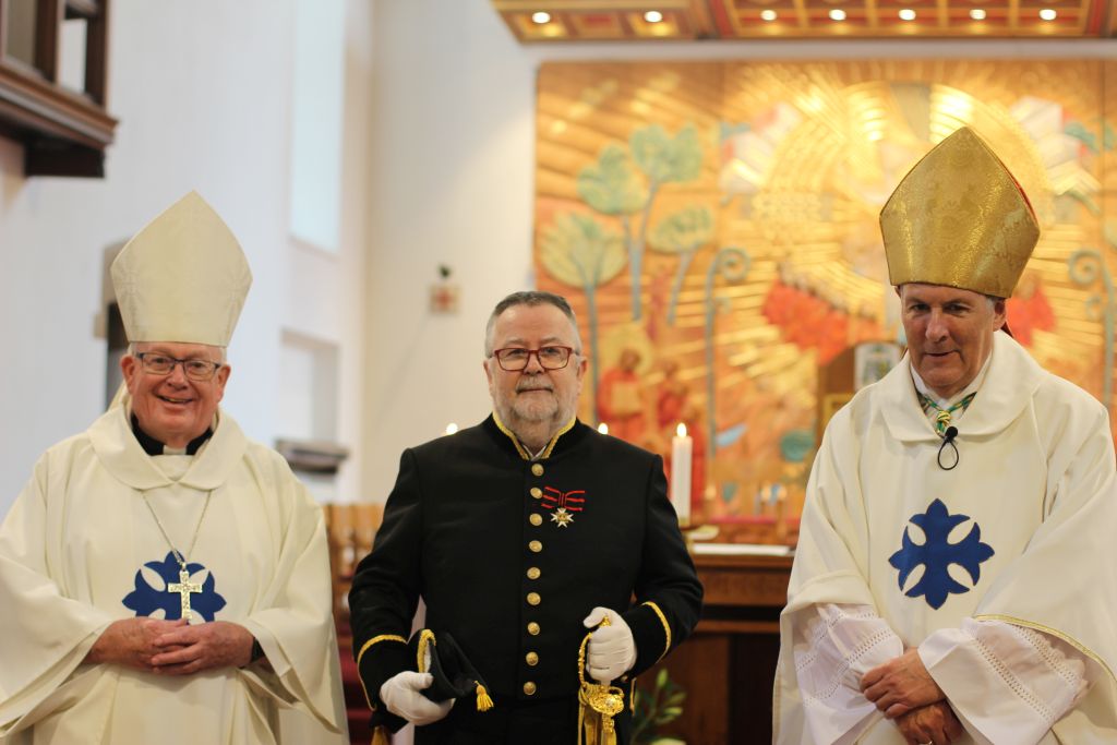 The investiture of John MacDonald as a Knight of St Gregory the Great took place on 7th April 2019 at St George and St Teresa’s Church, Dorrige, Solihull.